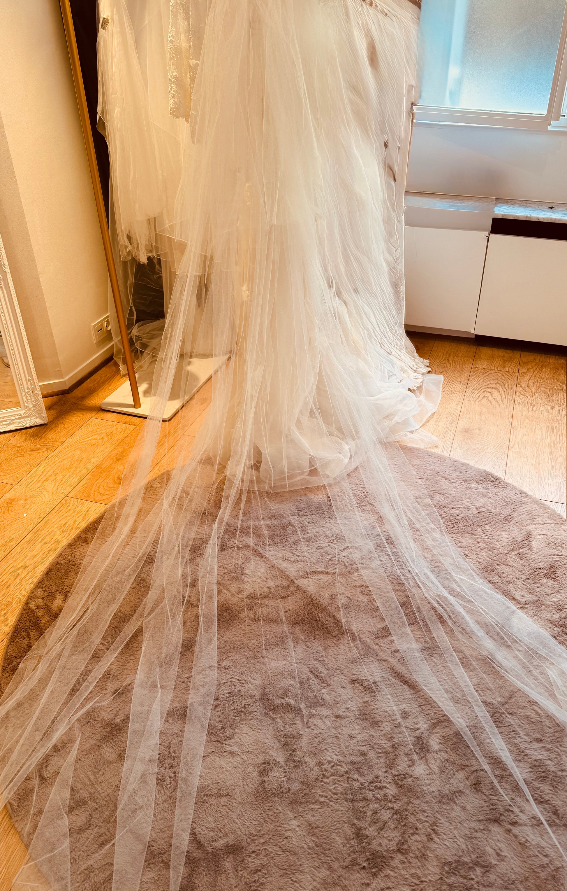 Ce voile de mariée simple à rabat incarne la pureté et la tradition avec une touche de modernité. Confectionné dans un tulle léger et fluide, il tombe avec grâce et ajoute une note romantique à votre silhouette. Le rabat permet de couvrir le visage pour la cérémonie, puis se relève facilement pour révéler la mariée.